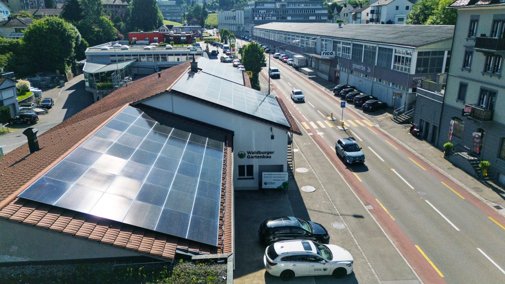 Waldburger Gartenbau nutzt die Sonnenenergie durch eine Photovoltaikanlage auf dem Firmendach. Der erzeugte Strom versorgt unter anderem den firmeneigenen Elektro-Lieferwagen